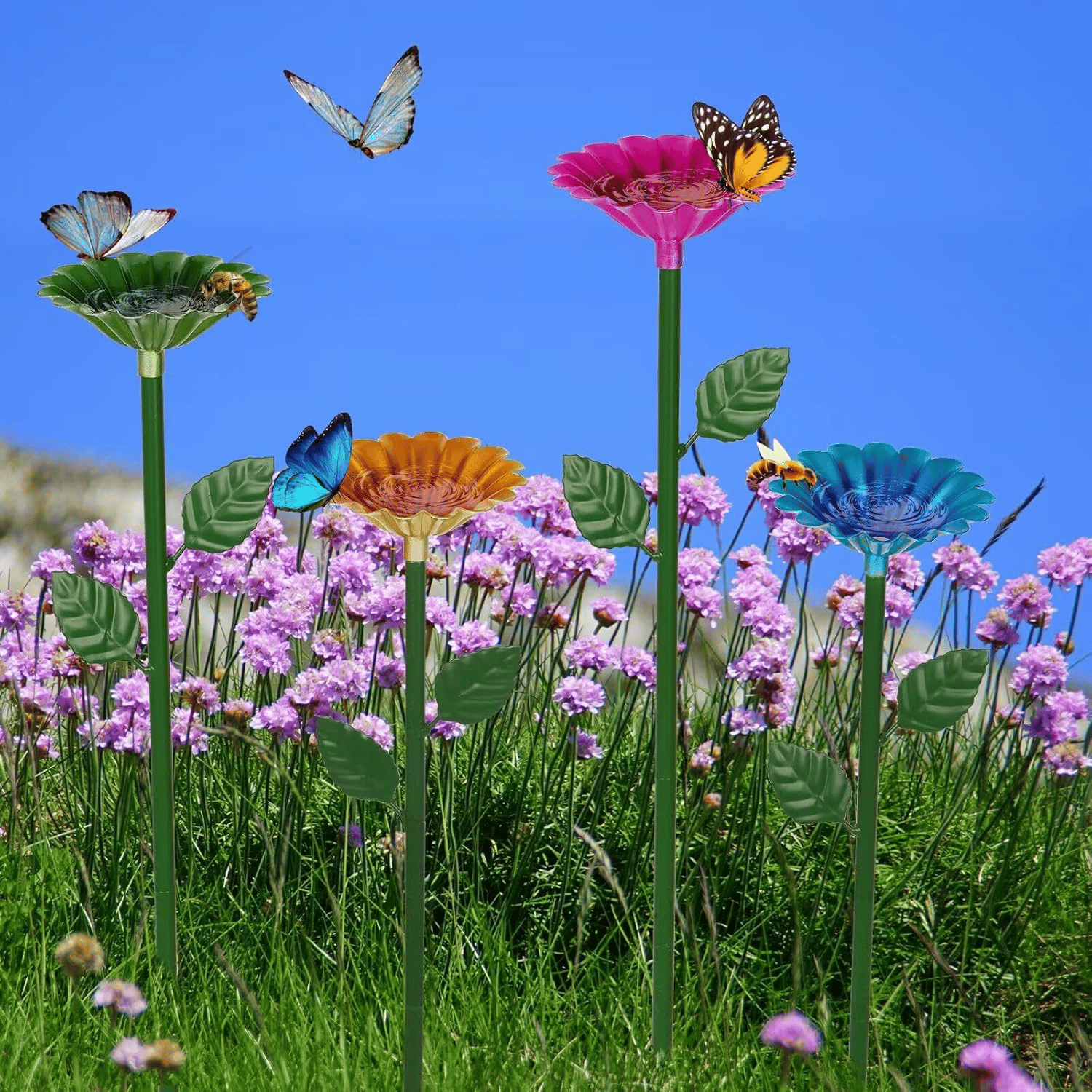 🐝🌷Bee and Butterfly Water Feeder with Flower Design