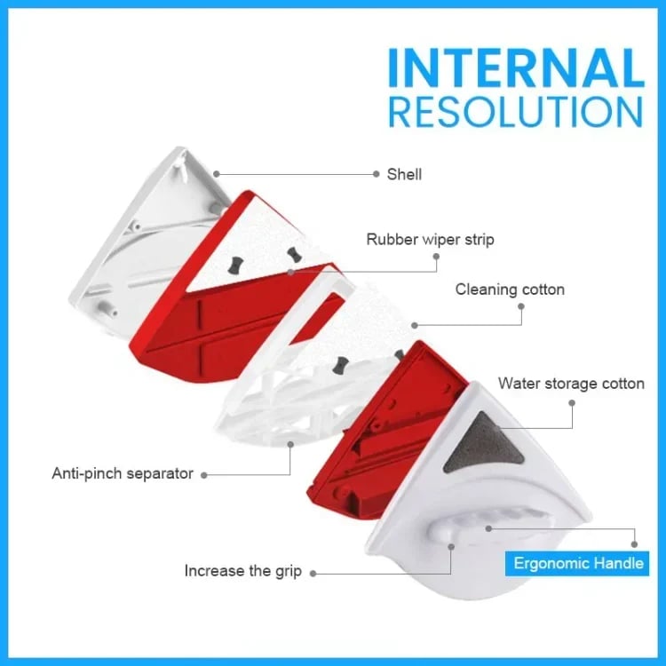 Some glass wiper on the market is with very strong magnet that has no safe way to open and easy to hurt your hands. Ours is an upgraded double-sided glass cleaner, which can be rotated open for easy and safe operation.