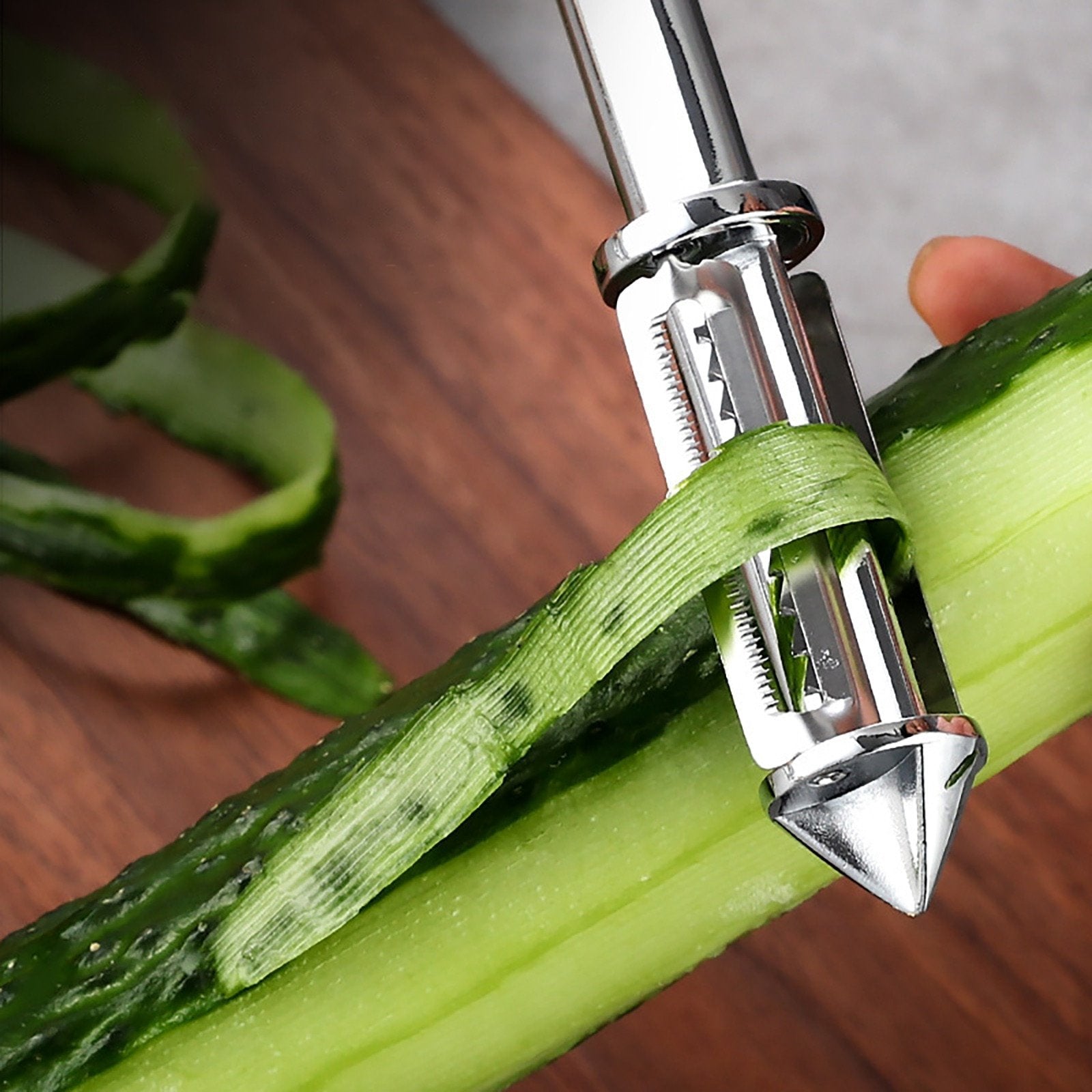 - It is a fashionable and beautiful peeler, which integrates peeling, shred, and Dig a hole Good tools for life. It is suitable for all kinds of fruits and vegetables and makes life more convenient.