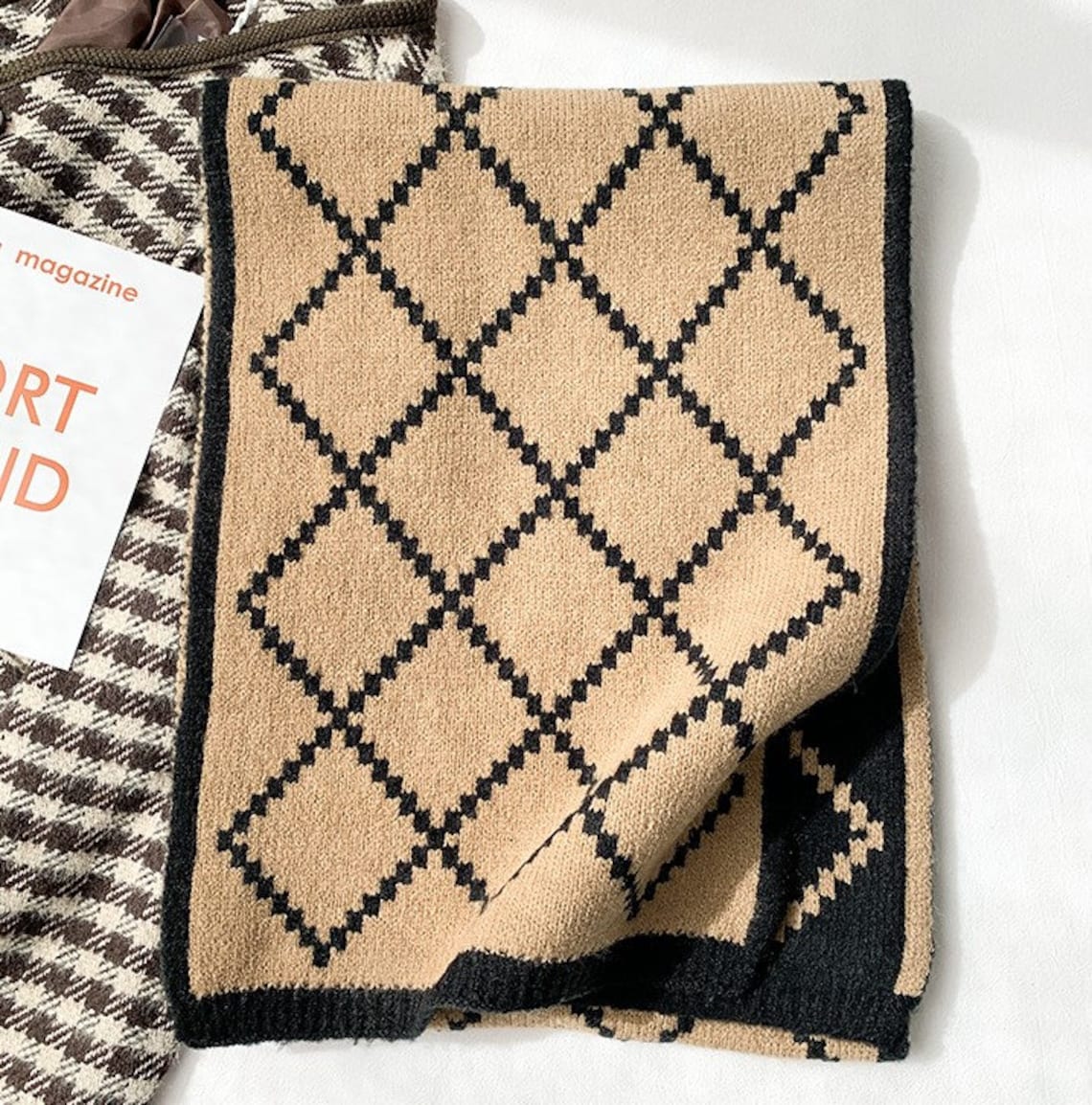 🔥Black White Diamond Shape Scarf Shawl