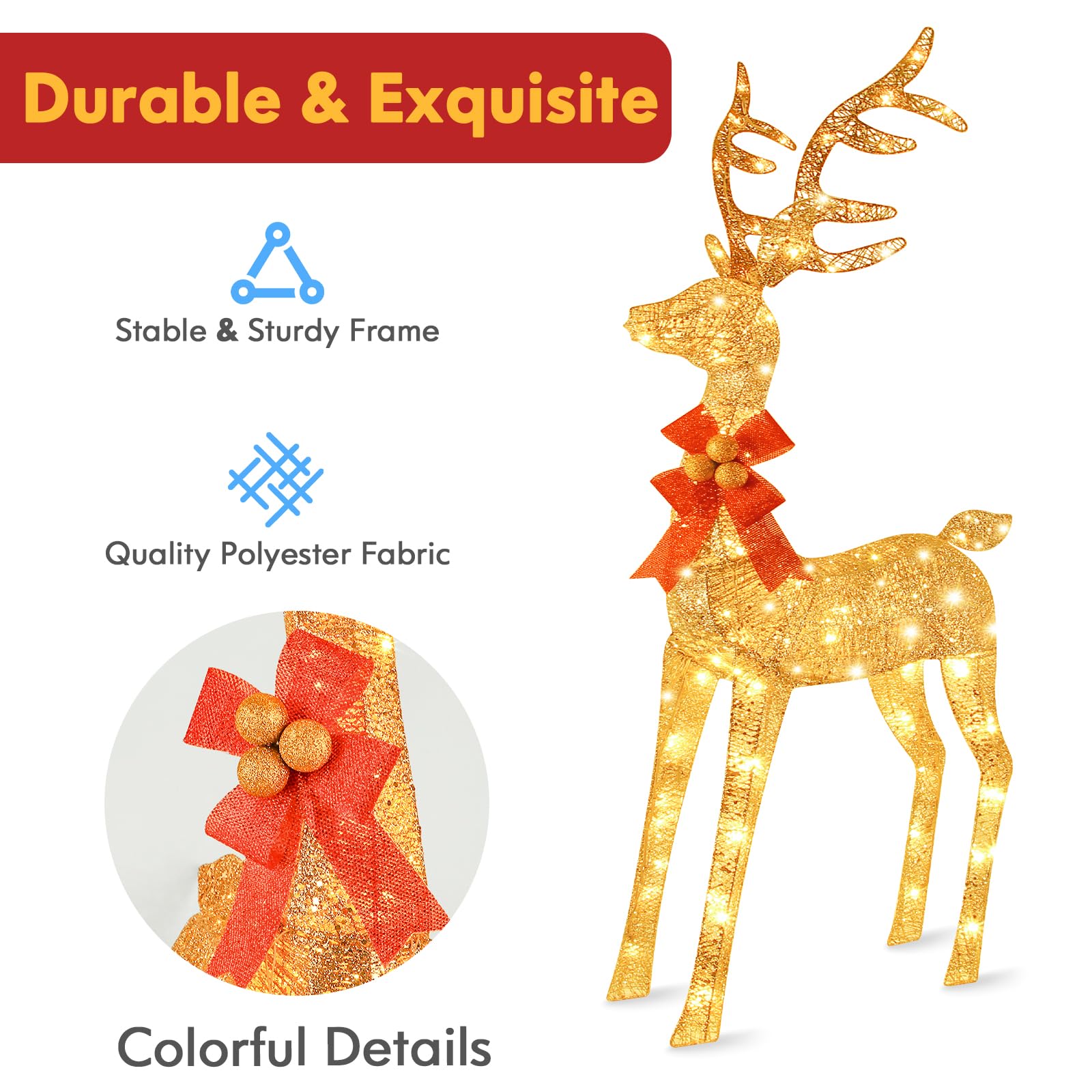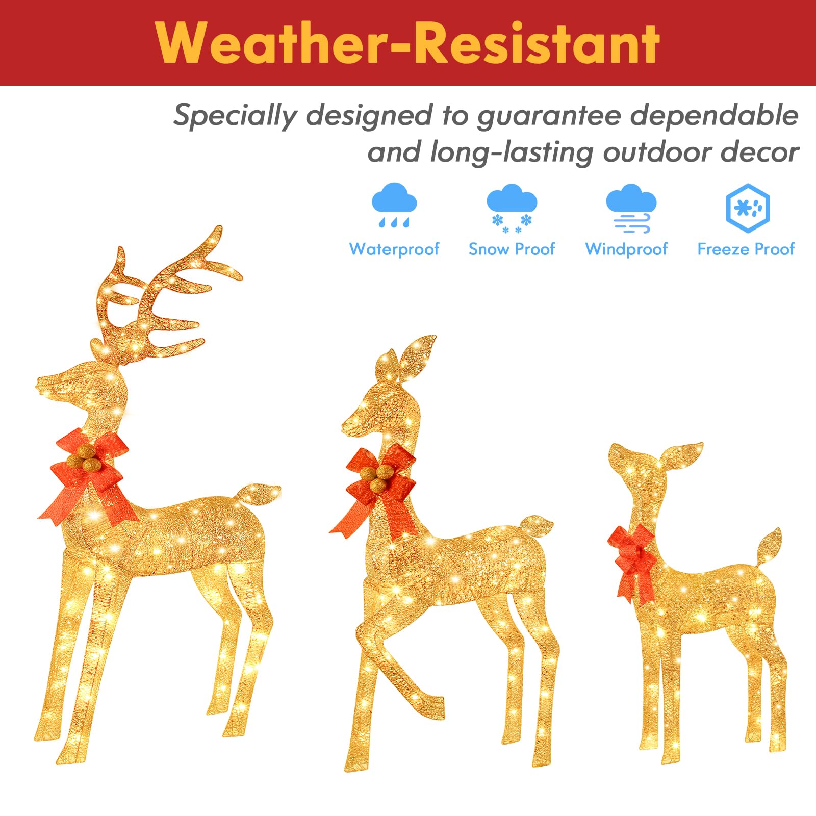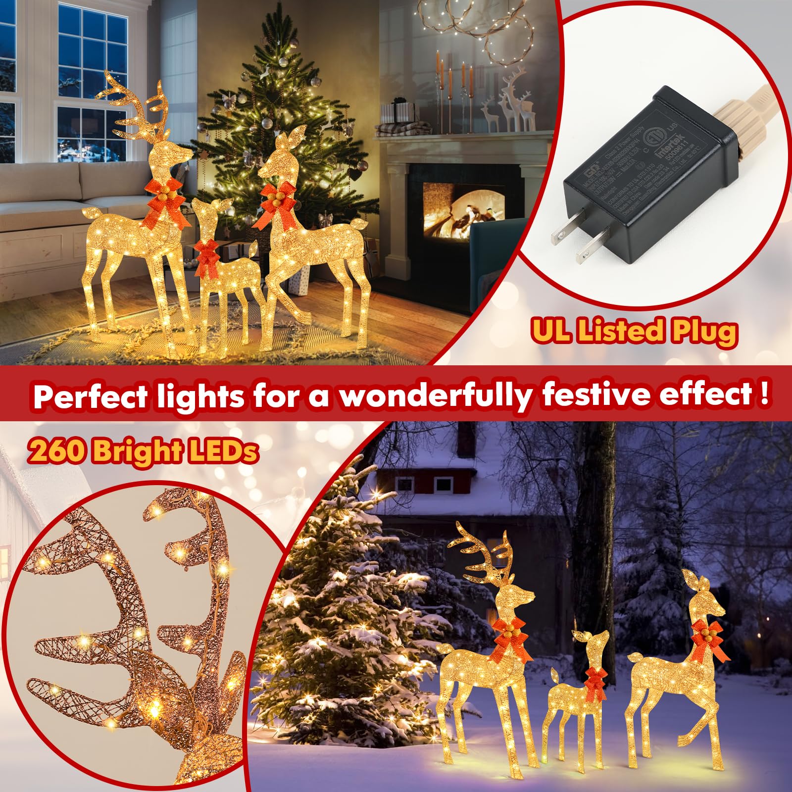 🦌[Enchanting Christmas Reindeer Family] This 3-piece lighted Christmas deer family set features lifelike deer in joyful, welcoming poses, enhanced by festive red bows and bells for that perfect holiday touch.