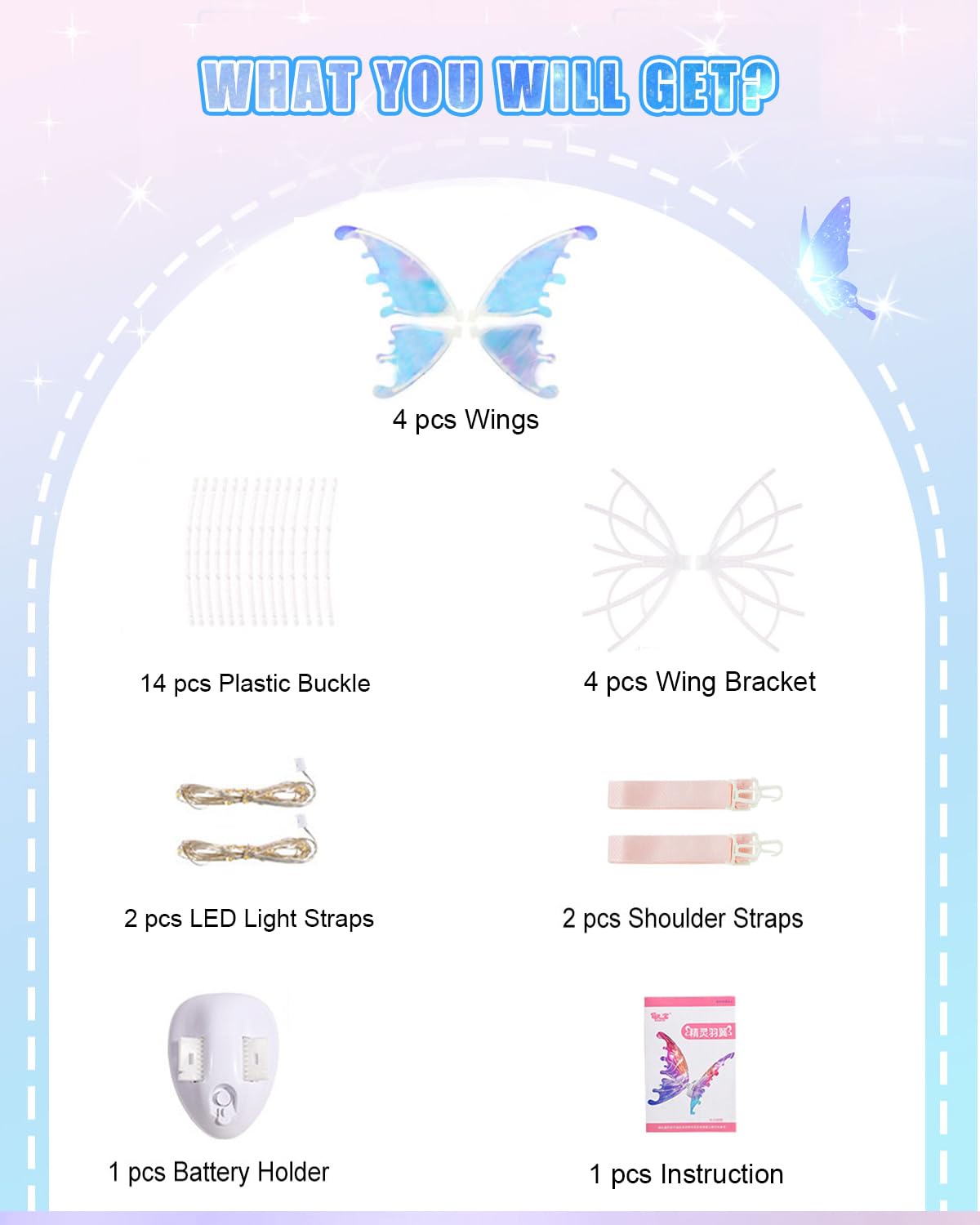 - Possessing this radiant pair of butterfly wings, you shall metamorphose into a whimsical sprite within the darkened expanse of night!