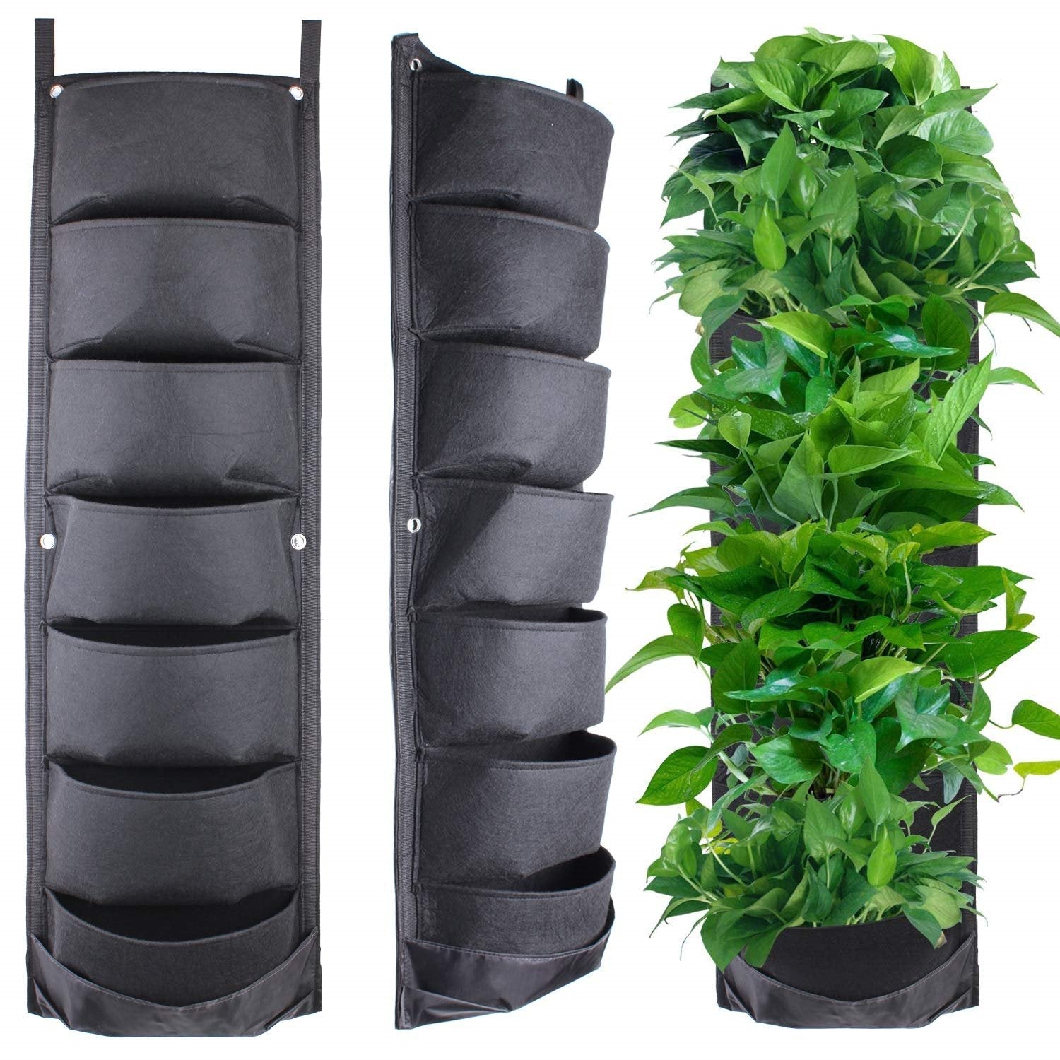 🏡Beautify your yard while creating instant privacy in minutes, vertical planter is made of felt cloth, rugged, self-absorbing, corrosion-resistant, breathable, 7-pockets wall hanging planter for balcony garden vertical flower herbs grow.