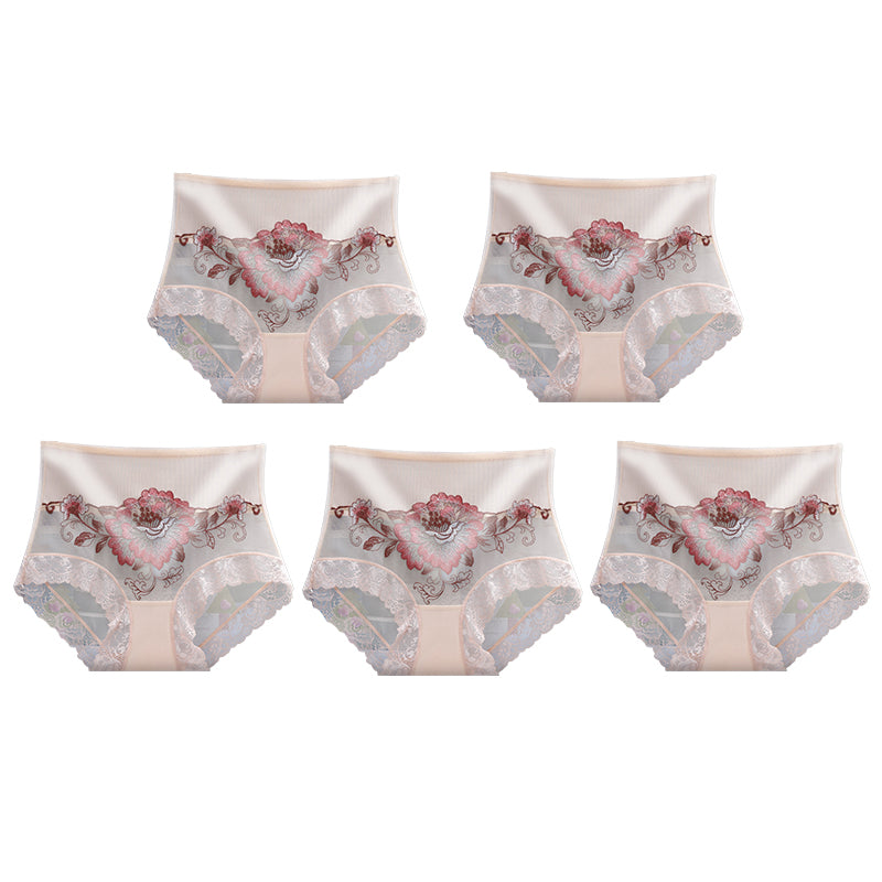 High Waist Premium Lace Embroidered Panties (5-Pack)