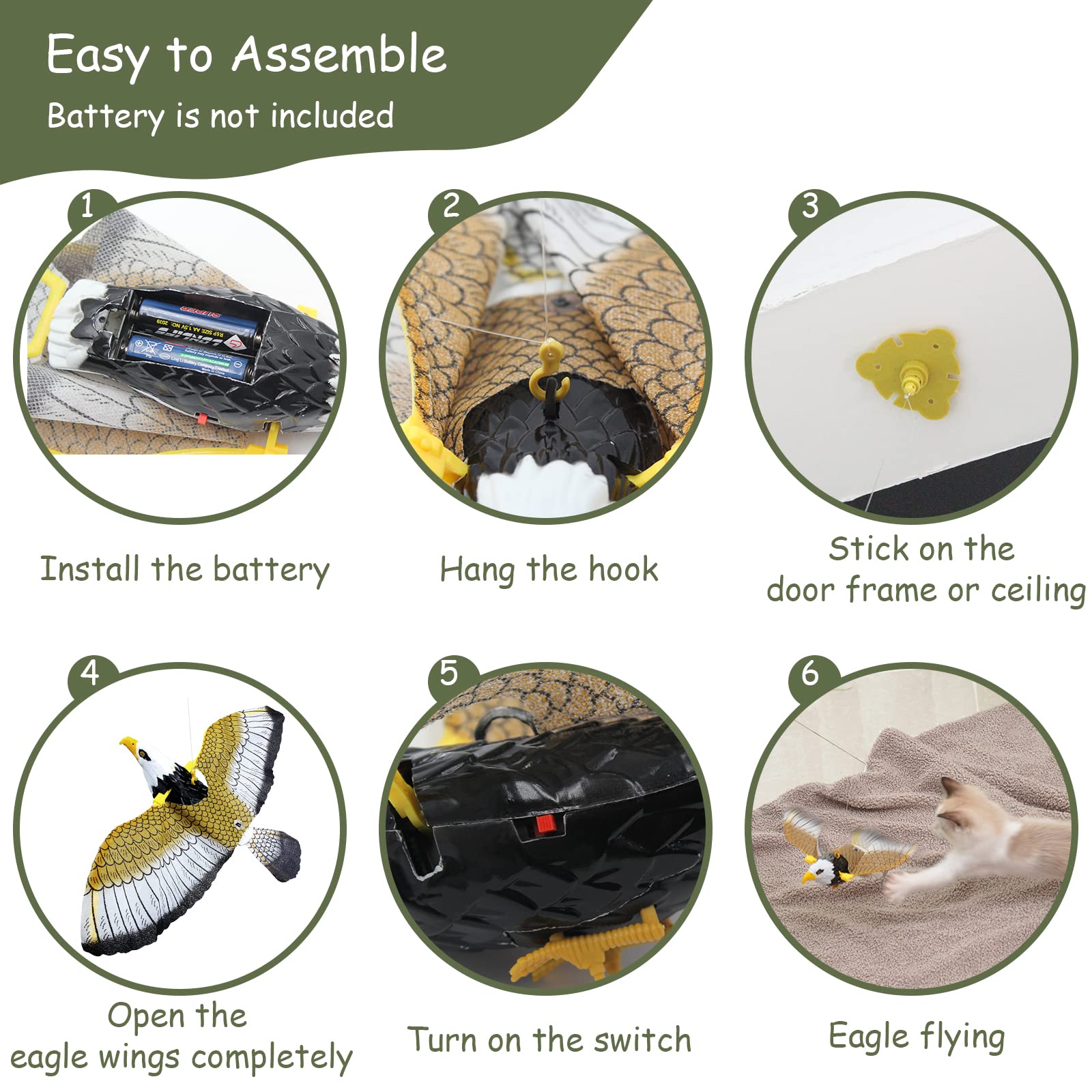 - 【Hanging Cat Toys for Indoor Cats】Hanging on the ceiling like an eagle, flying freely in the sky. Emits bird sounds and glows. The flap of the hanging cat bird toy's wing looks like a real bird and is very cute.