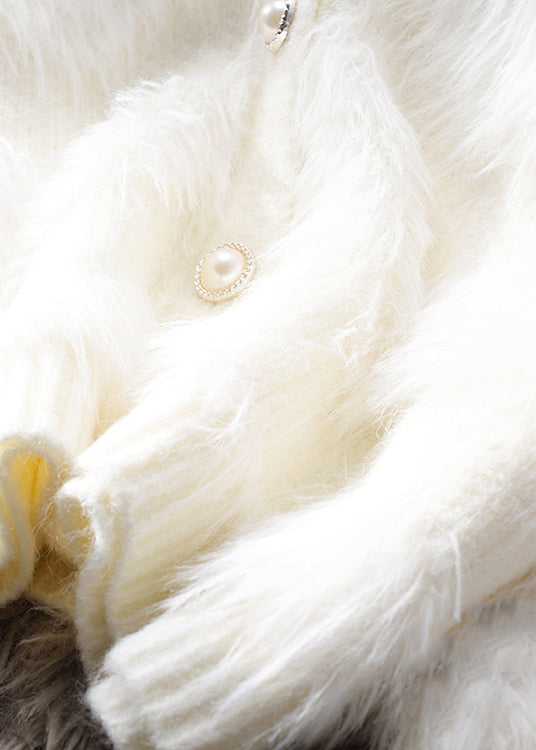 Italian White V Neck Patchwork Mink Hair Knitted Cardigan Fall