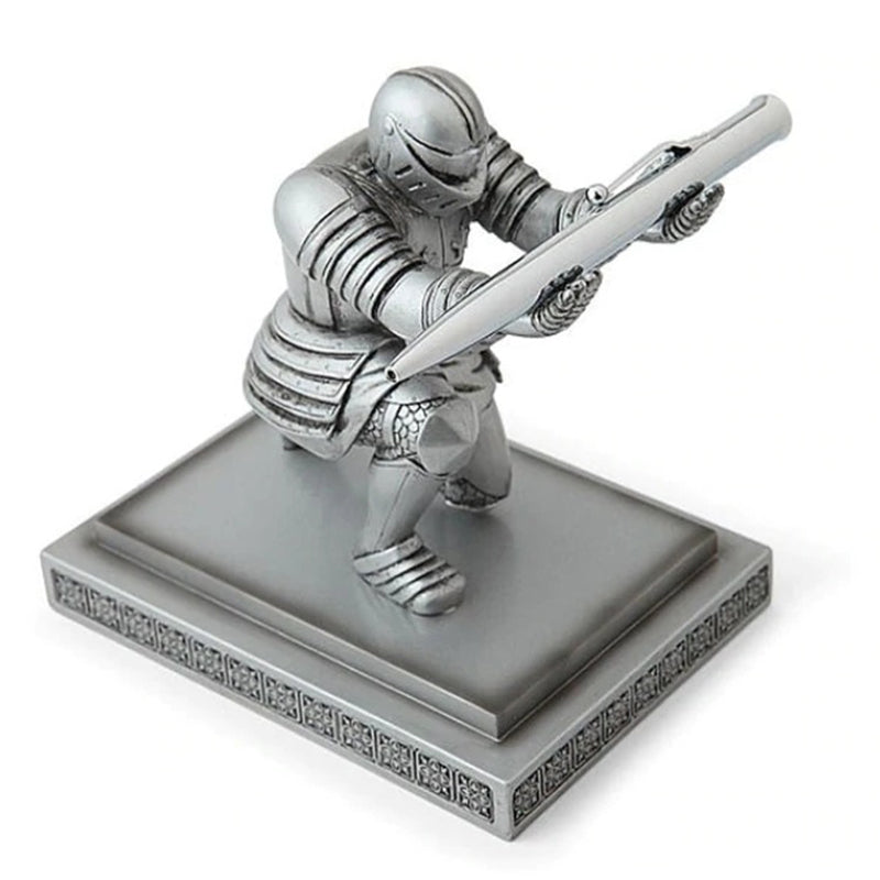 If you don't have a good pen holder, you're clearly doing life wrong. There's nothing better in life than to scoop your pen from a good sturdy holder and feel like you're writing down something important. This Knight Pen Holder is a unique statue for your office that depicts a medieval knight bowing down and holding out your pen for you as if you were his King and the pen is your sword. He bows down in front of you presenting you your pen, and you can almost hear him whispering to you: "Your Pen, Your Majesty". Update: What would a knight pen holder be without a sword pen ?