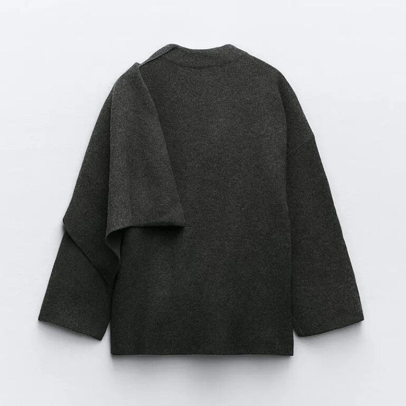 Stay elegantly warm this winter with this Knitted autumn coat with scarf. A timeless silhouette combines both style and comfort seamlessly. Crafted from the most luxurious materials, including a soft scarf, ensuring you remain effortlessly chic and snug, come rain or shine.