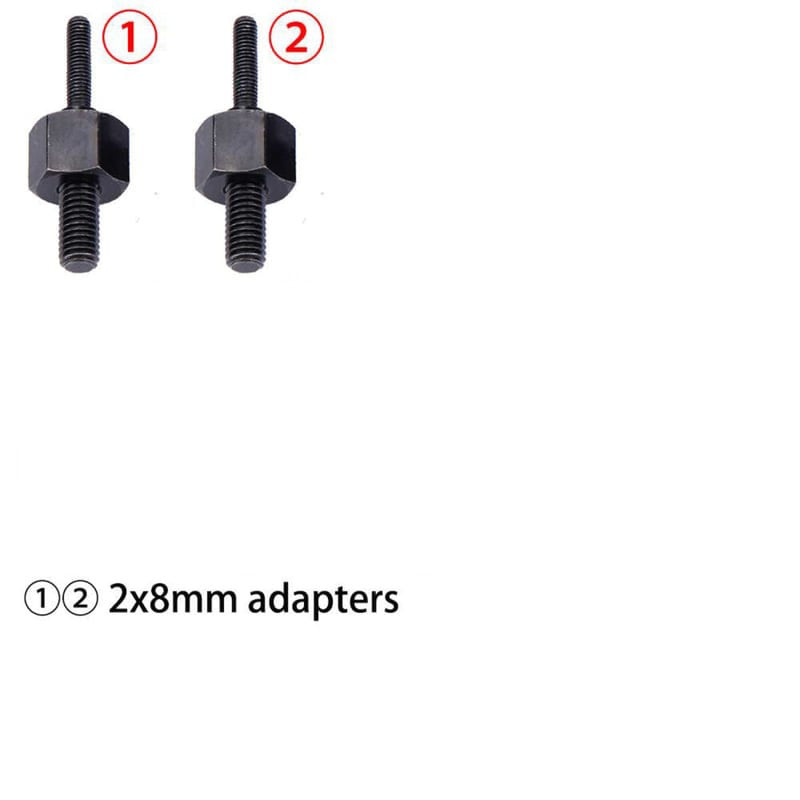 Pre-installed with 2x 10mm clockwise regular mounting threads, comes with additional 2X 8mm mounting studs, fits most motorcycles with 8mm or 10mm standard threads.