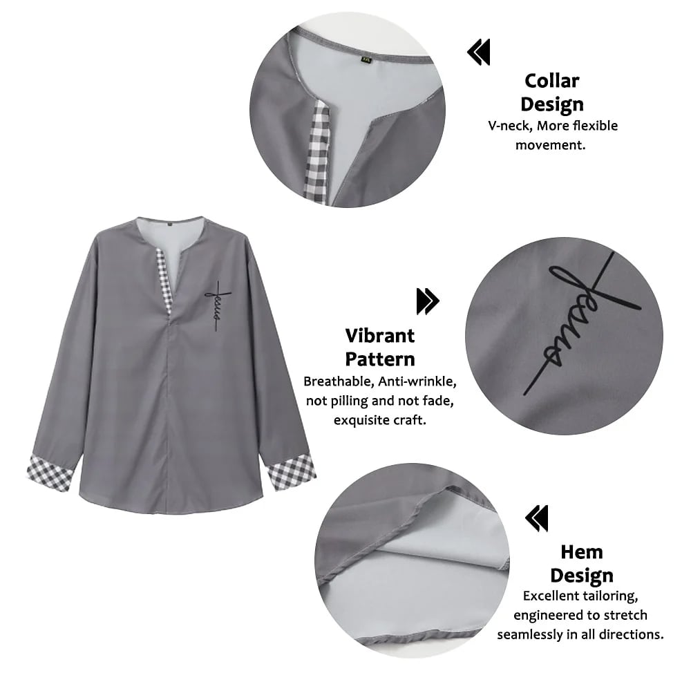 - Features a flattering V-neckline.