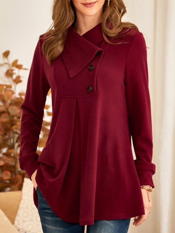 [💥 2023Hot Sale ]Plain Elegant Lapel Buttons Casual T-shirt