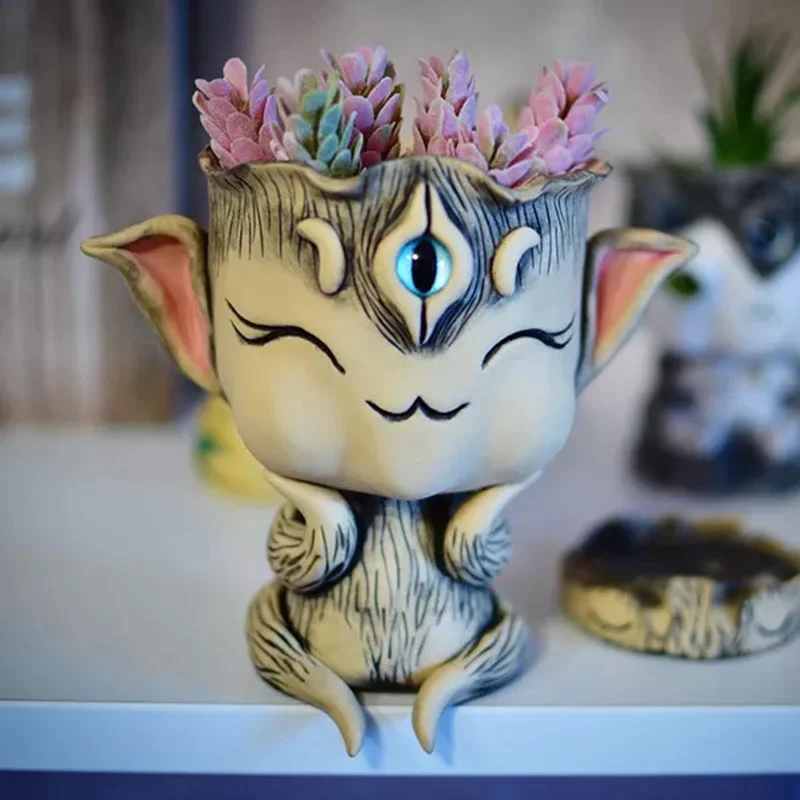 👍Exquisite Workmanship - Based on the classic three-eyed alien, it has a unique design. A unique, humorous statue and a functional planter can be placed in a pot or placed directly in a drainage hole.