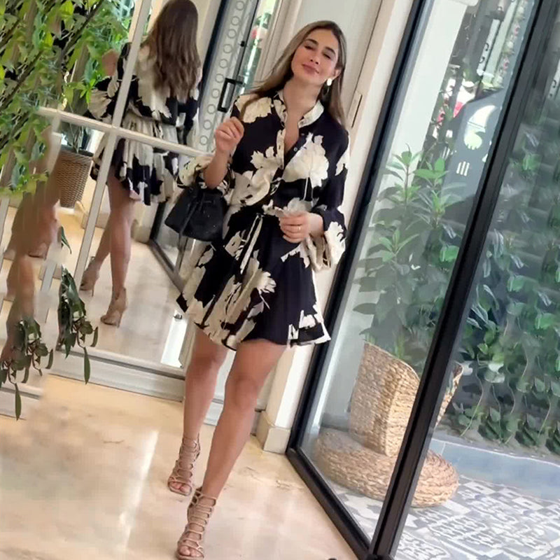 PRINTED FABRIC WITH ELEGANT DETAILS- The exquisite printed fabric adds a unique and eye-catching element to this dress. The intricate pattern gives an artistic and vintage feel, bringing a sense of style and personality to your closet.
