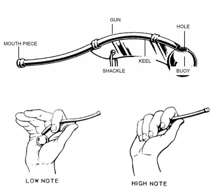 In the days of sail, orders aboard ship were piped on the Bosun's Call, whose high-pitched whistle could be heard against the strongest wind. Whistle are 5" long, with matching 25" neckchain fitted with a swivel snap-hook.