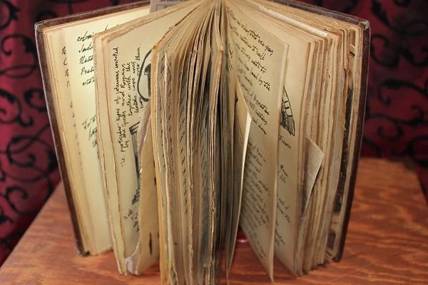 Each page in our definitive diary has been meticulously scanned and printed from our unique fully hand written manuscript created in antique ink and pen, and likewise hand drawn pages. Each page of your diary has then been carefully hand aged and weathered for that authentic Hollywood look and feel. This is not available anywhere else.