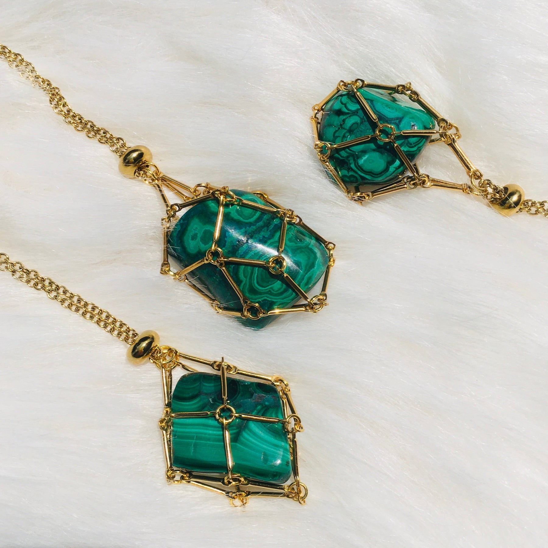 This sleek mesh holder keeps your precious gems secure and accessible, allowing you to embrace their energy wherever you wander. Change your crystals every day depending on your mood.