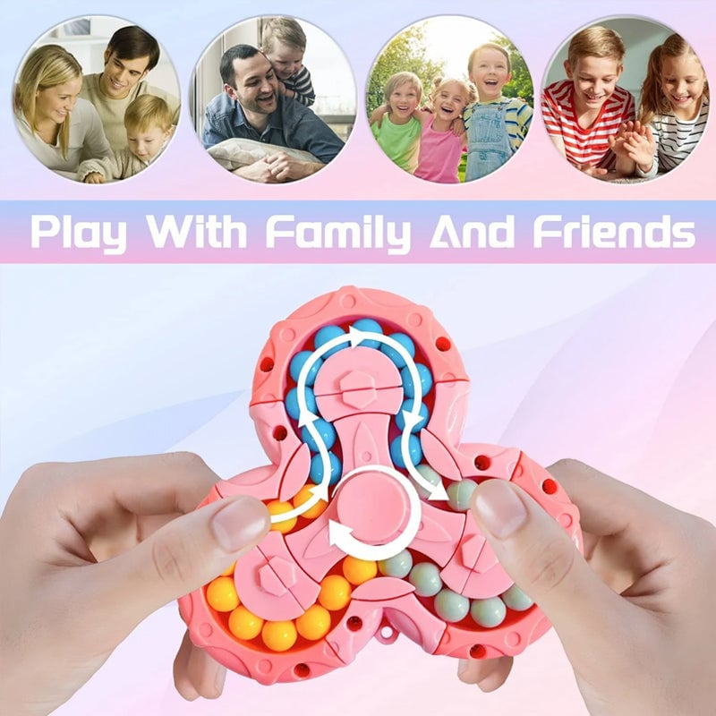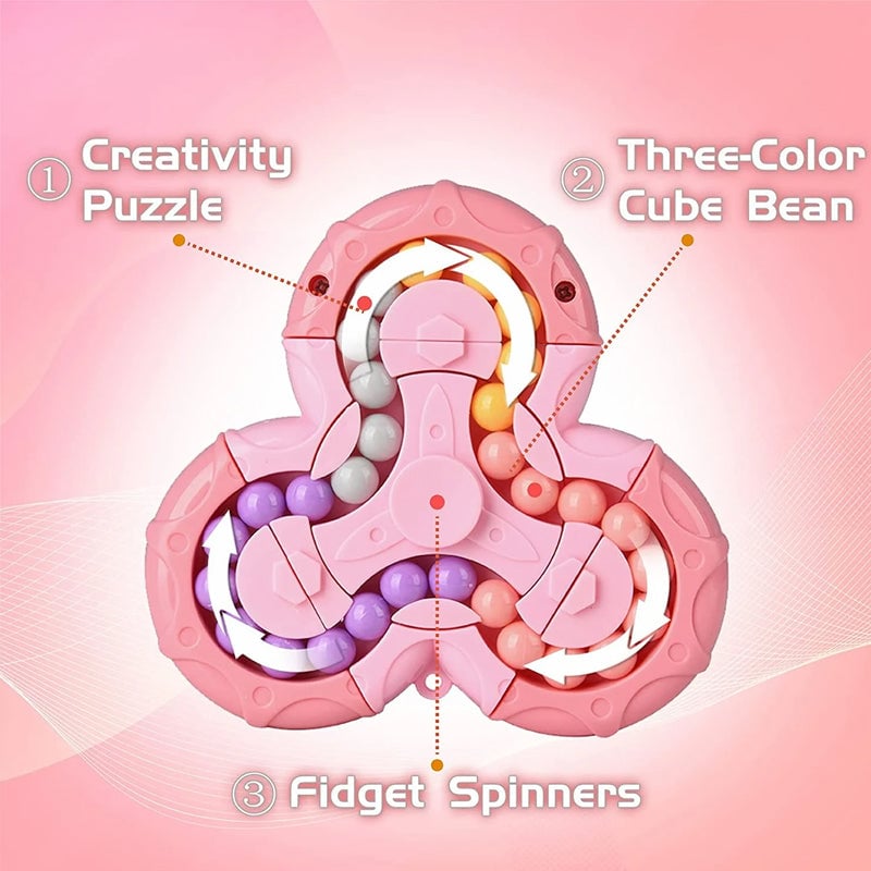 - DESIGN: Features bright colors and stylish designs, your kids will love this pop beautifully designed double-sided sensory toys. This is a two-in-one decompression game, which can be a fidget spinner toy or a jigsaw puzzle. The middle can be rotated 360 degrees, and then find a way to match the color of the beads correctly. If you want a little more difficulty, you can mix and match the colors of the double layer and six sides, and match the beads of the same color.