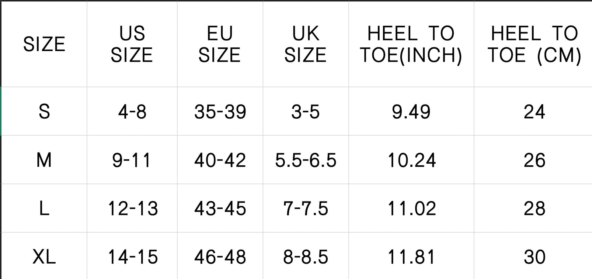 Size Chart: