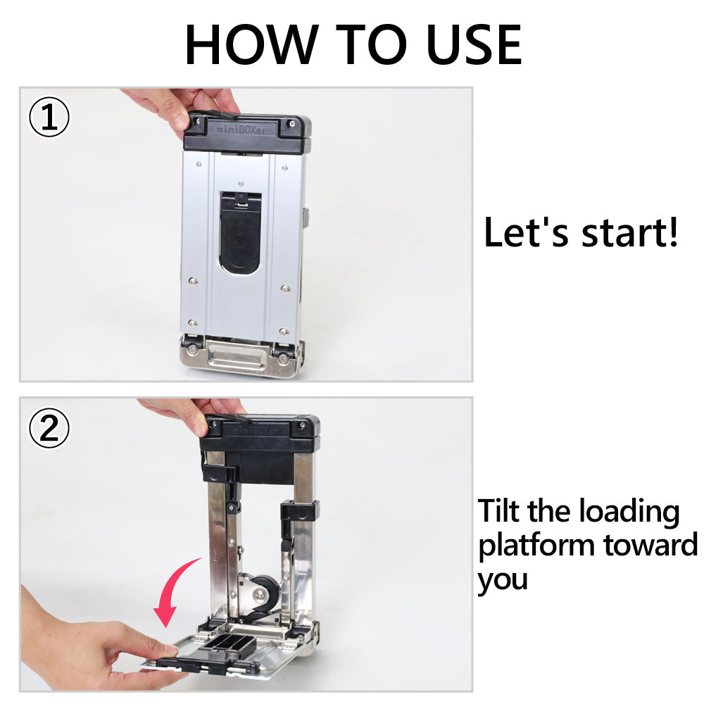 - Our Mini Folding Hand Truck withstands and is loadable up to 44lbs, suitable for Light & Medium-Duty and equipped with long handle reachable up to 38 inches, suitable for business and short trip, using at the airport, and office, both outdoor and indoor available *NOTES: To convert book-size folding truck to a business travel trolley, needed to open, extend, rotate the parts in sequence