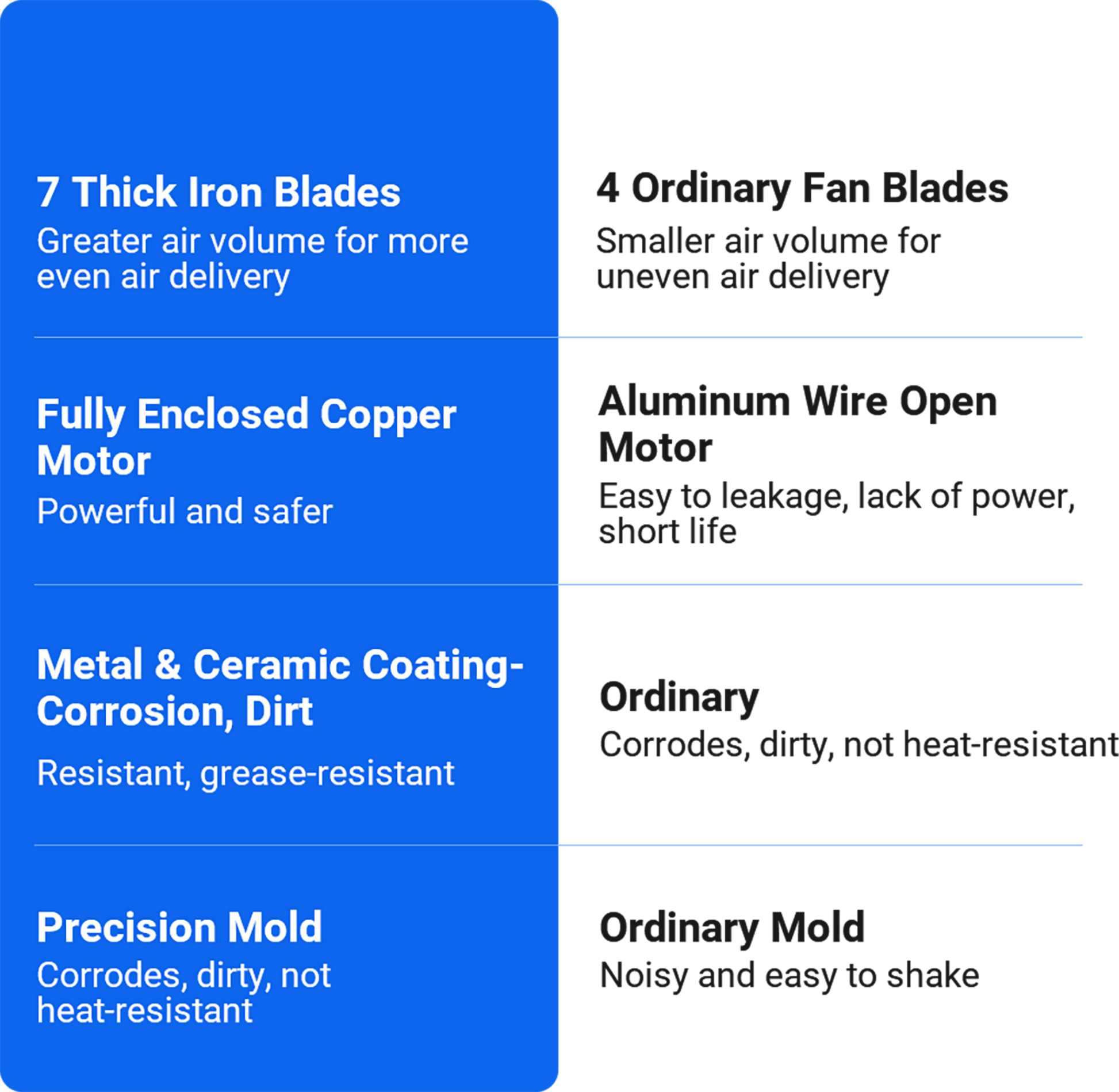 * Thickened Blades: Seven thickened blades deliver more powerful and uniform air volume, not easy to deform. It runs stably and vibration-free, ensuring large air volume while reducing noise.