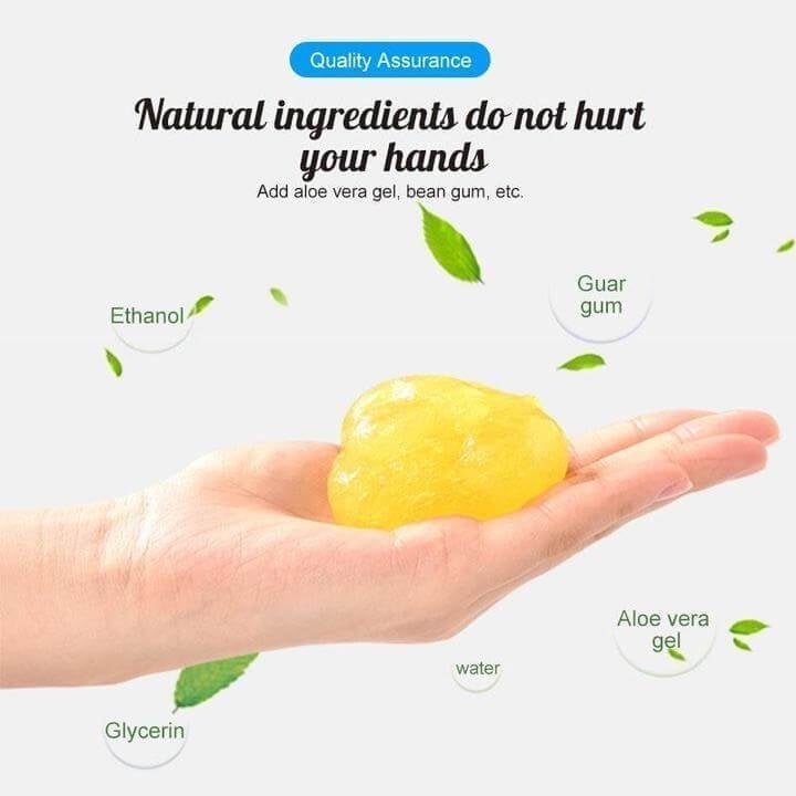 Environmental protection material: Made of biodegradable gel, it won’t leave a residue on the items you’re cleaning, is not sticky to hands, smells sweet with lemon fragrance, and totally no stimulation to skin.