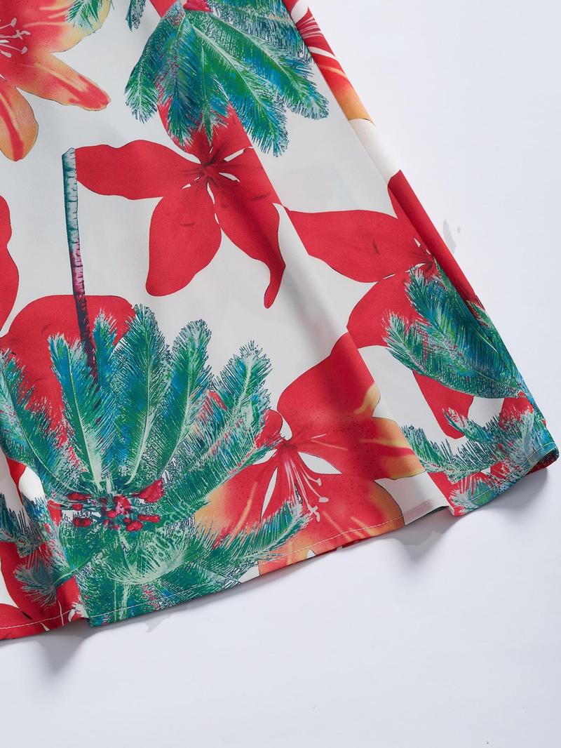 Women's Floral Print Chain Decor Split Thigh Tie Back Cami Dress