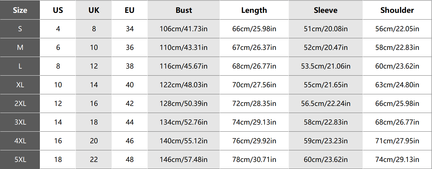 NOTE: If you are not sure, please choose a larger size. If you have any doubts about this product, we suggest you contact our customer service team. Due to the color difference between the screens of different electronic devices (computers, mobile phones or ipads), especially the CRT screen and the LCD screen, the color of the item may be slightly different from what you see in the photos, please take the actual product as the standard.